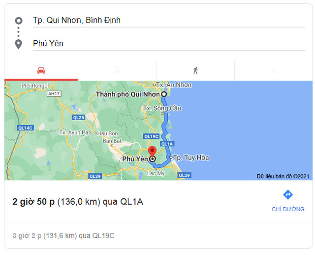 Từ Quy Nhơn đến Phú Yên, bạn sẽ phải di chuyển khoảng 136km. Thời gian di chuyển bằng ô tô theo quốc lộ 1A thường mất khoảng 2 giờ. Đây là một quãng đường không quá dài, mang lại cho bạn cơ hội khám phá những cảnh đẹp tuyệt vời dọc đường.