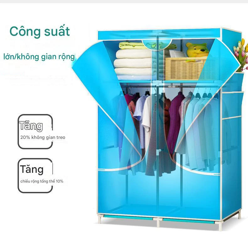 Tủ vải 2 buồng hoặc 3 buồng với nhiều ngăn treo sẽ giúp bạn phân chia quần áo, đồ lót một cách hợp lý. Khung tủ được làm từ sắt sơn tĩnh điện, đảm bảo độ bền cao và khả năng chịu lực tốt. Không chỉ có chức năng lưu trữ, nó còn giúp không gian sống của bạn thêm gọn gàng và ngăn nắp.