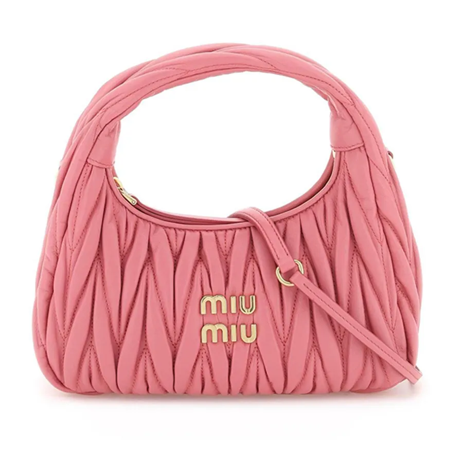 Một trong những mẫu được yêu thích là túi Miu Miu Wander Matelassé Nappa Leather Hobo Mini Bag màu vàng gold. Chiếc túi này không chỉ mang đến vẻ quý phái mà còn rất rực rỡ, hoàn hảo cho những dịp cần tỏa sáng. Đặc biệt, thiết kế họa tiết Matelassé đã trở thành dấu ấn dễ nhận diện của thương hiệu.