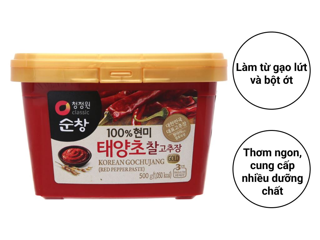 Tương ớt gạo lứt Chung Jung One cũng là một sự lựa chọn thú vị. Được làm từ gạo lứt lên men kết hợp với các loại ớt bột Hàn Quốc, hương vị của nó rất thơm ngon và độc đáo. Không những thế, sản phẩm này còn làm cho món ăn có màu sắc hấp dẫn, khiến bữa ăn thêm phần cuốn hút.