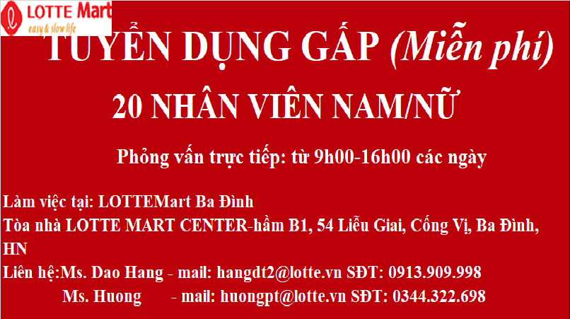 Tuyển dụng nhân viên Lotte Liễu Giai bạn ơi