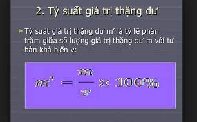 Tỷ suất giá trị thặng dư là một khái niệm quan trọng trong kinh tế học, đặc biệt là khi phân tích quan hệ giữa lao động và tư bản. Công thức tính tỷ suất giá trị thặng dư được thể hiện như sau: m’ = (m/v) × 100%, trong đó m’ là tỷ suất giá trị thặng dư, m là giá trị thặng dư, và v là tư bản khả biến. Điều này có nghĩa rằng tỷ suất giá trị thặng dư biểu thị tỷ lệ phần trăm giá trị thặng dư so với tổng tư bản dùng để sản xuất ra giá trị đó.