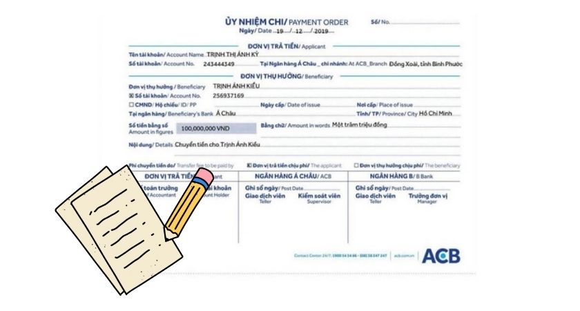 Để điền mẫu Ủy nhiệm chi, bạn cần ghi rõ ngày, tháng, năm của giao dịch, cũng như tên đơn vị trả tiền. Phần thông tin về người trả tiền cũng hết sức quan trọng, bao gồm họ tên, địa chỉ, số tài khoản và thông tin xác minh như CMND hoặc hộ chiếu. Mẫu này có thể được sử dụng trực tiếp tại quầy giao dịch của ngân hàng ACB hoặc thực hiện thao tác online thông qua trang web của họ.