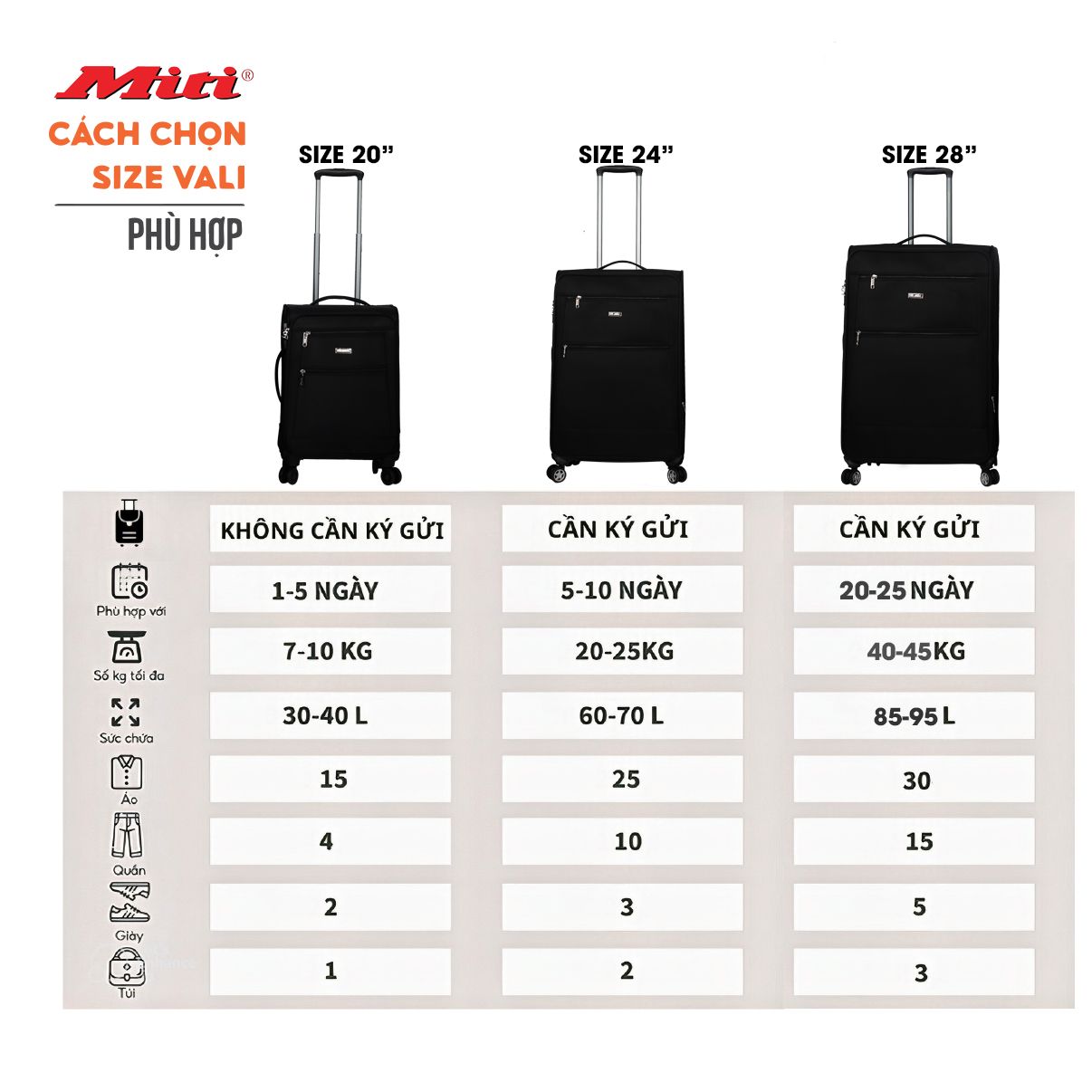 Nó có sức chứa khoảng 20-25 kg đồ đạc, đáp ứng hoàn hảo nhu cầu của bạn mà không quá cồng kềnh. Đặc biệt, kích thước này giúp bạn dễ dàng sắp xếp và kiểm soát hành lý khi di chuyển, đảm bảo bạn không phải lo lắng về việc thu xếp đồ đạc quá nhiều.
