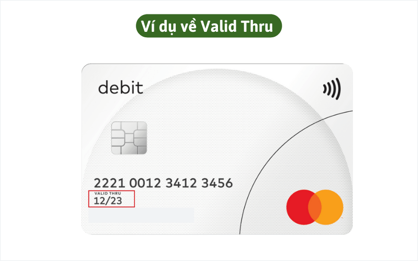 Valid Thru, hay còn gọi là ngày hết hạn của thẻ, là thông tin rất quan trọng mà người dùng cần chú ý. Thông thường, thông tin này được định dạng theo tháng và năm, ví dụ “Valid Thru 12/23”. Điều này có nghĩa là thẻ sẽ hết hạn vào cuối tháng 12 năm 2023. Nếu thẻ hết hạn, bạn sẽ không thể thực hiện giao dịch.