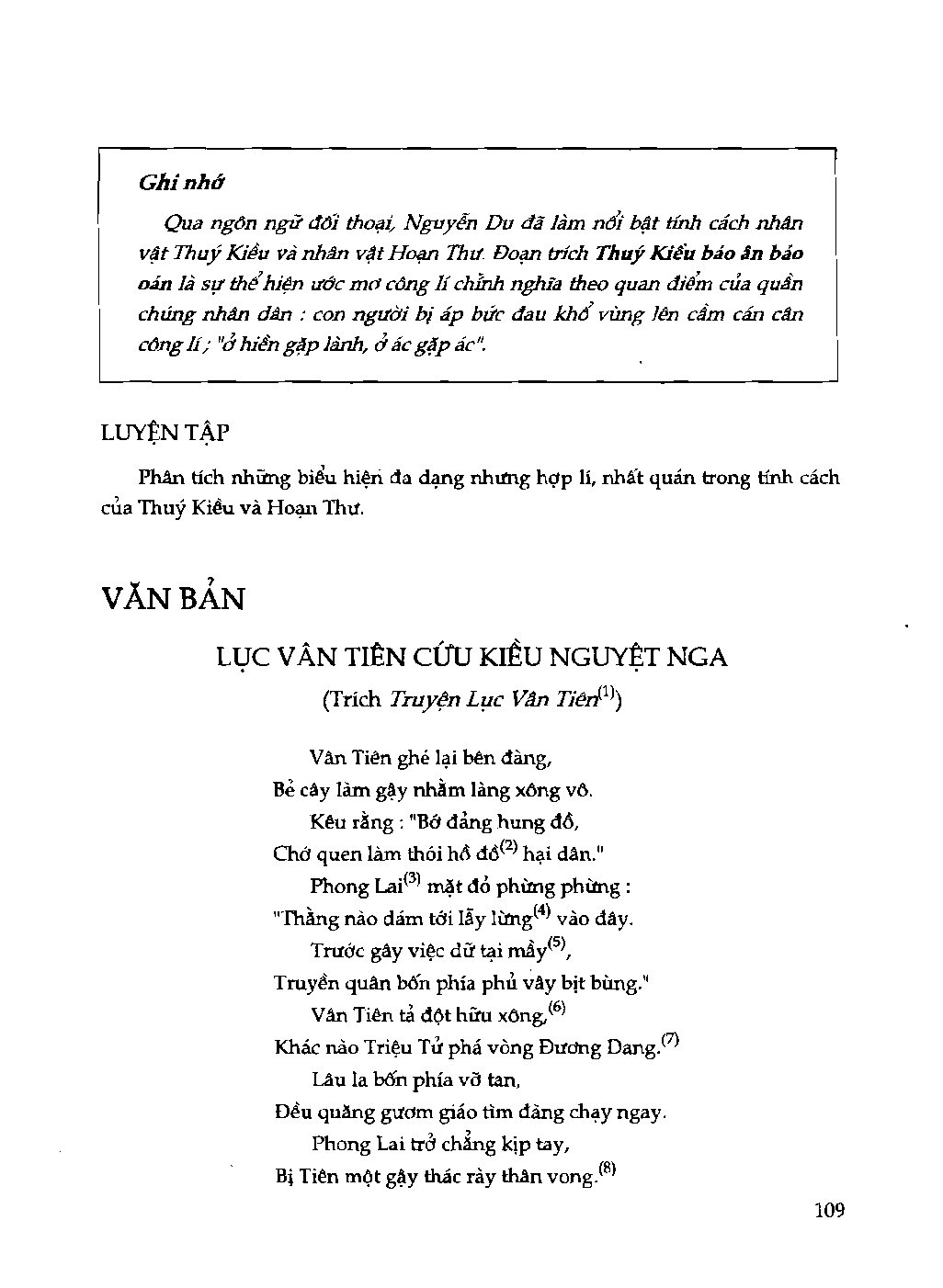 Trong cuộc chiến với bọn cướp, Vân Tiên đã cứu được Kiều Nguyệt Nga – một thiếu nữ xinh đẹp đang gặp nguy hiểm. Sự cứu giúp này không chỉ thể hiện tình nghĩa anh hùng, mà còn tạo nên một mối dây liên kết tốt đẹp giữa hai nhân vật. Kiều Nguyệt Nga không chỉ là hình tượng của cái đẹp mà còn đại diện cho những giá trị nhân văn cao quý.