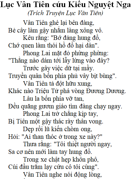 Truyện Lục Vân Tiên của Nguyễn Đình Chiểu, sáng tác vào thế kỷ XIX, không chỉ là một tác phẩm nổi bật trong nền văn học Việt Nam mà còn mang giá trị nghệ thuật sâu sắc. Với 2082 câu thơ lục bát, tác phẩm sử dụng thể thơ dân gian, giúp người đọc dễ dàng cảm nhận và ghi nhớ. Đoạn trích “Lục Vân Tiên cứu Kiều Nguyệt Nga” thể hiện rõ nét hình ảnh người anh hùng với lòng dũng cảm và nghĩa hiệp.