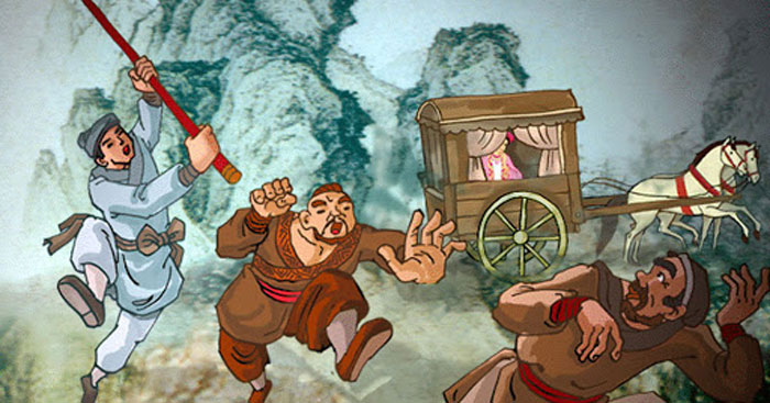 Lục Vân Tiên, chàng trai tài năng, khôi ngô, không chỉ có văn võ song toàn mà còn mang trong mình lòng dũng cảm tuyệt vời. Trên đường từ núi về kinh dự thi, chàng đã không ngần ngại can đảm đối đầu với bọn cướp đang quấy phá nhân dân. Sự xuất hiện của Vân Tiên đã cứu được Kiều Nguyệt Nga khỏi tay bọn ác nhân.