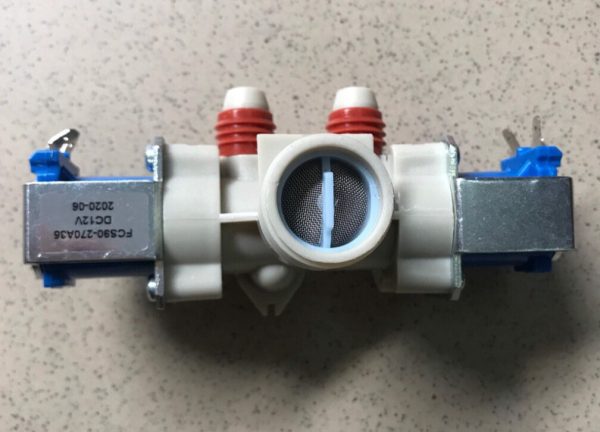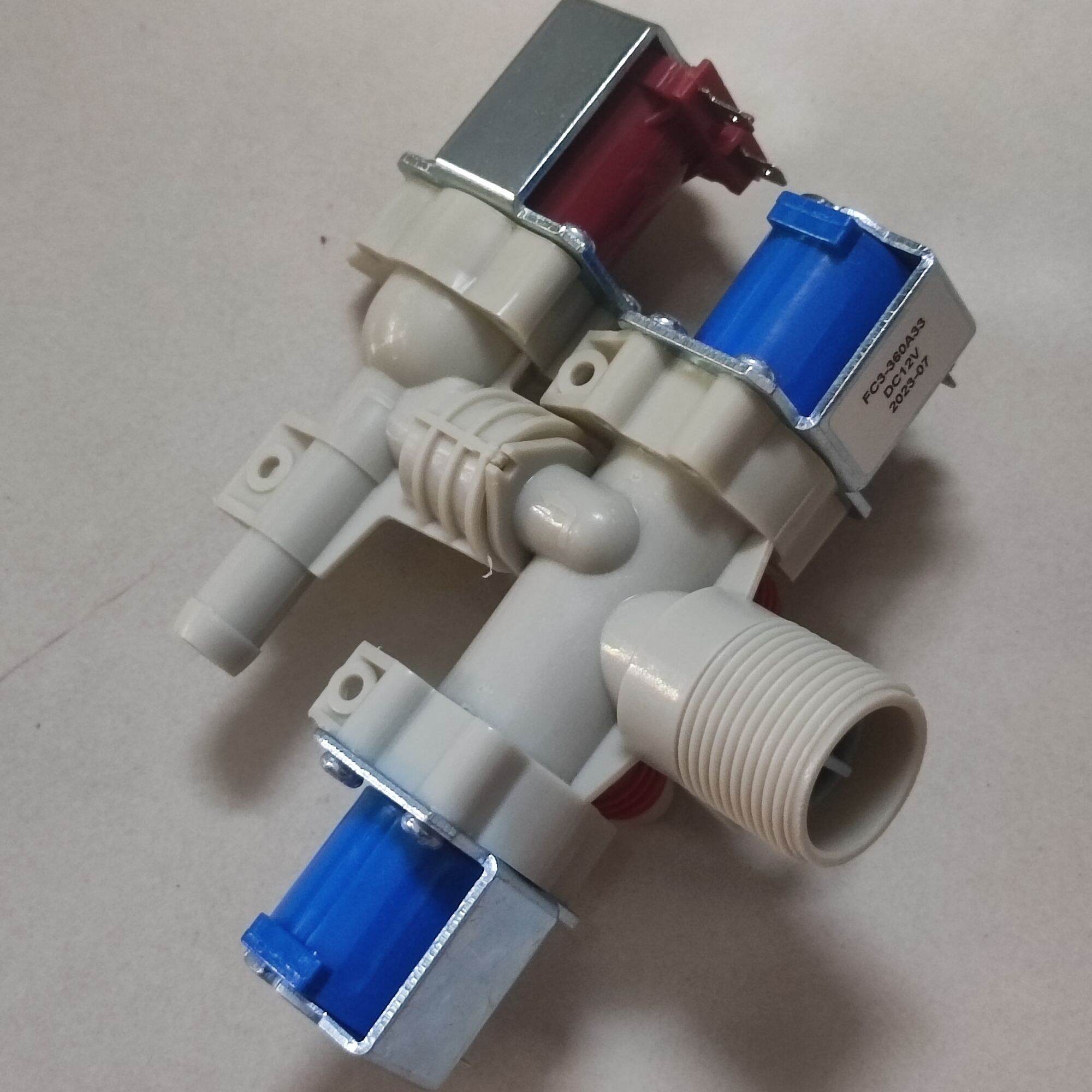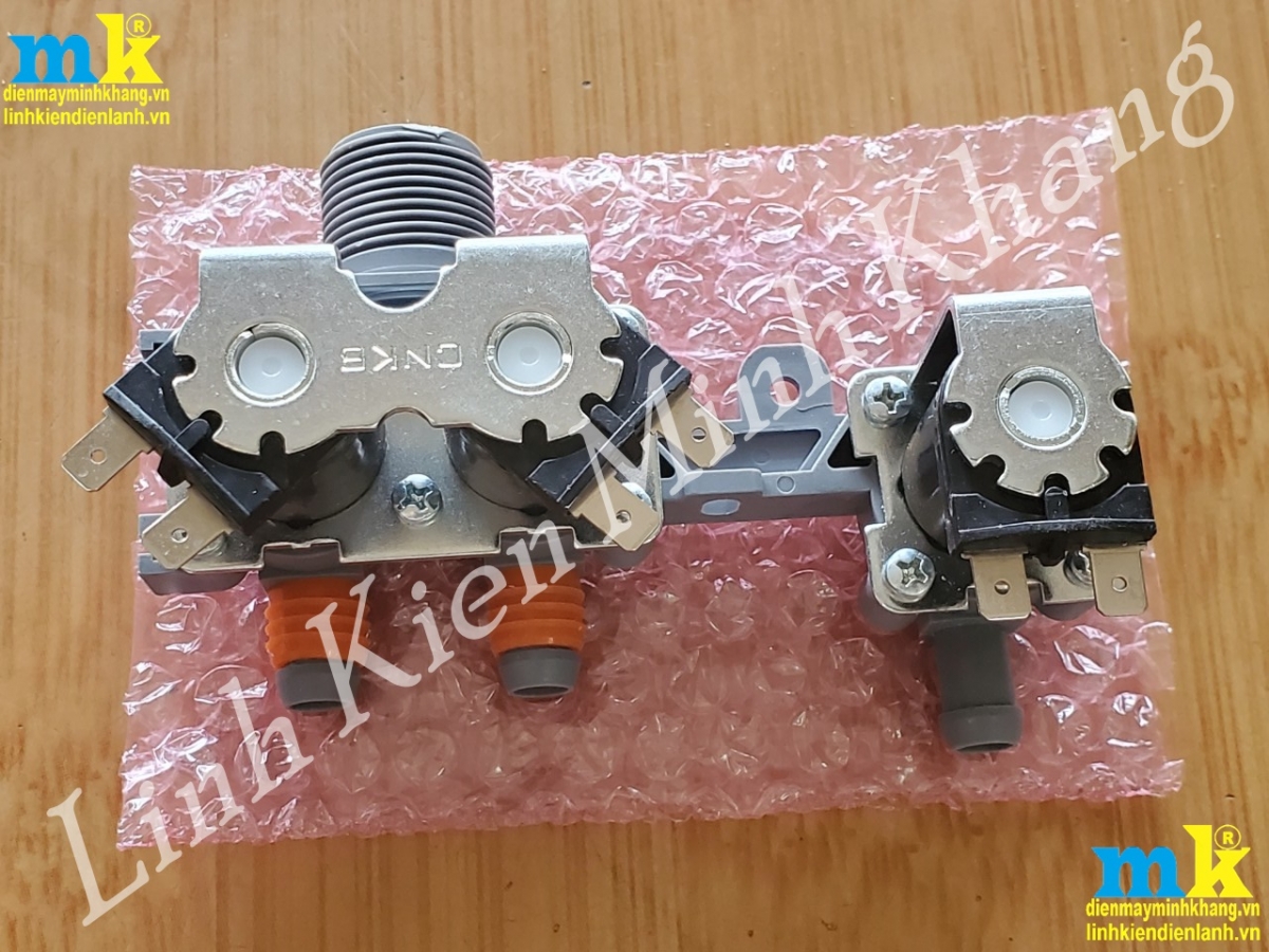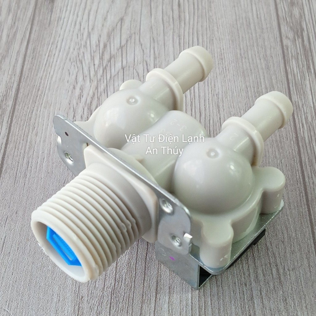 Thường dùng cho máy LG cửa trước lẫn cửa trên, loại này có 2 cổng ra (2 ngõ), điện áp DC 12V, hoạt động êm ái với cuộn dây điện từ. Khi máy cần nước, điện kích hoạt từ trường hút lõi van mở ra, nước chảy mạnh mẽ.