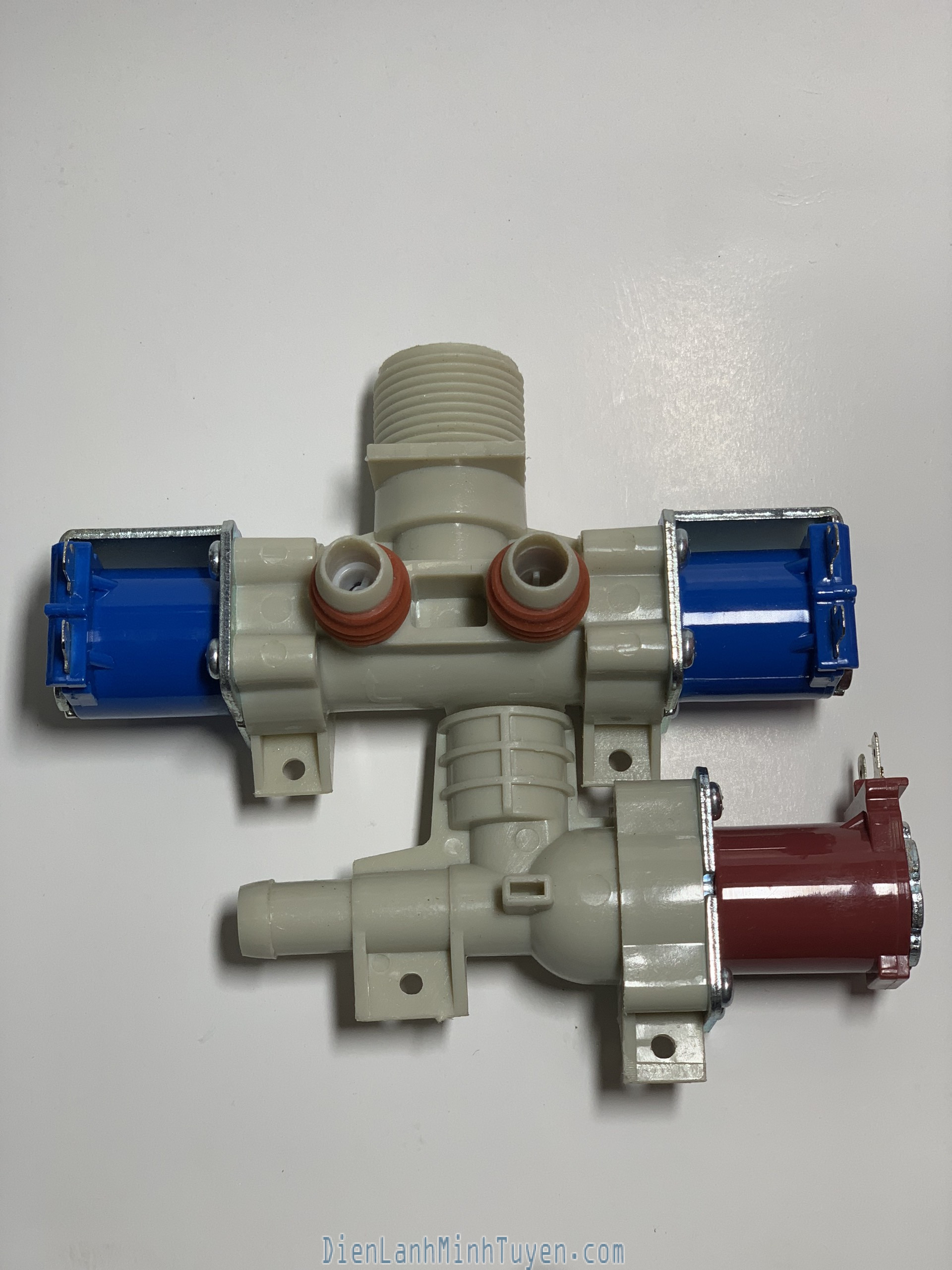 Hoặc van đôi, 3 ngã DC 12V cũng rất bền bỉ, giá khoảng 120.000 – 250.000đ tùy loại, phù hợp máy cửa trước như FV1409S4W. Chúng chống nhiễm bẩn nước tốt, lưu lượng ổn định, tránh tình trạng nước không vào hay tràn.