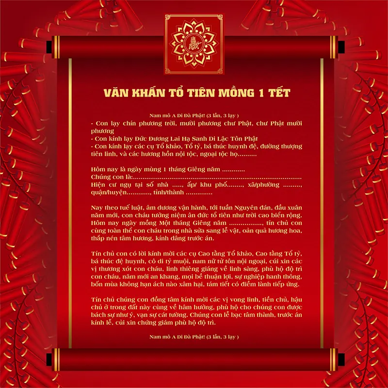 Ngày mùng 1 Tết là thời điểm thiêng liêng mở đầu năm mới, mang nhiều ý nghĩa đối với mỗi gia đình Việt Nam. Vào dịp này, việc chuẩn bị văn khấn và thực hiện nghi lễ khấn đúng cách được xem là một phần quan trọng, thể hiện lòng thành kính với thần linh, gia tiên. Bài viết dưới đây sẽ giới thiệu chi tiết về các bài văn khấn ngày mùng 1 Tết, từ cách khấn, văn khấn ngắn gọn, văn khấn gia tiên, thần tài, thổ công đến ý nghĩa sâu sắc của từng nghi lễ, cùng những lưu ý cần thiết khi khấn tại gia để cầu mong một năm mới an lành, may mắn.