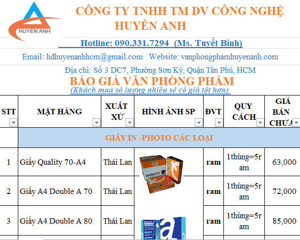 Bảng Giá Văn Phòng Phẩm Giá Sỉ