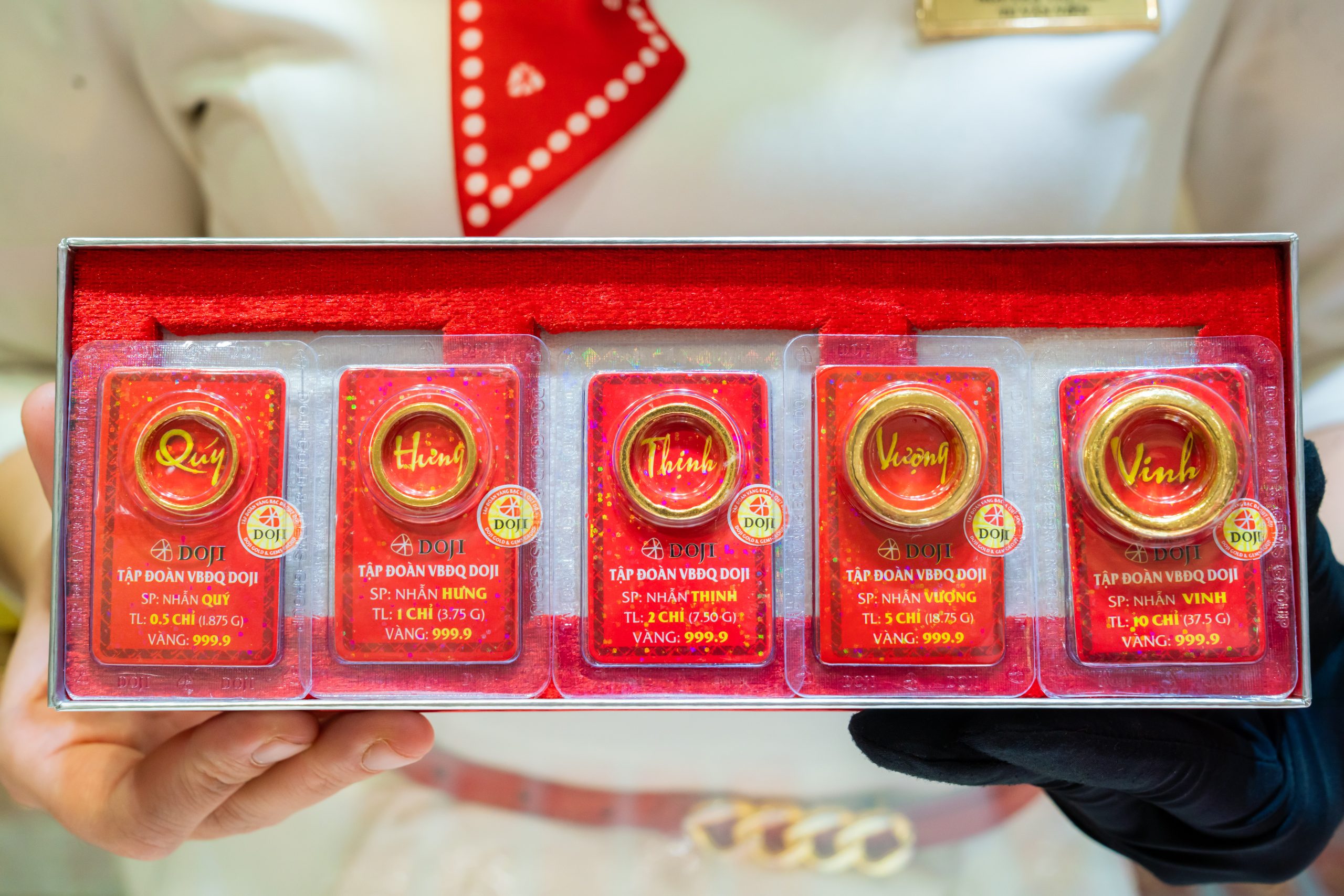 Sản phẩm Vàng DOJI không giới hạn ở vàng miếng mà còn bao gồm trang sức, vàng nhẫn, tạo nên sự đa dạng trong lựa chọn cho khách hàng. Không chỉ là vật phẩm lưu giữ giá trị, Vàng DOJI còn thể hiện phong cách và cá tính riêng của người sở hữu nhờ vào thiết kế độc đáo và tinh tế.