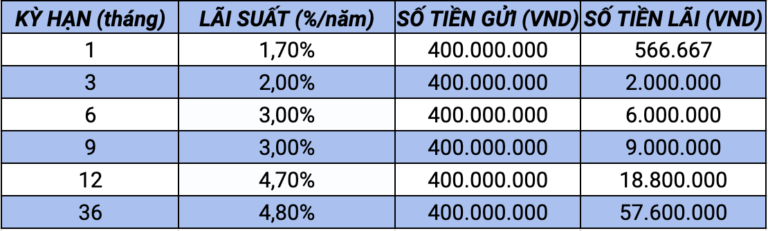 Vay 400 triệu 5 năm trả bao nhiêu mỗi tháng