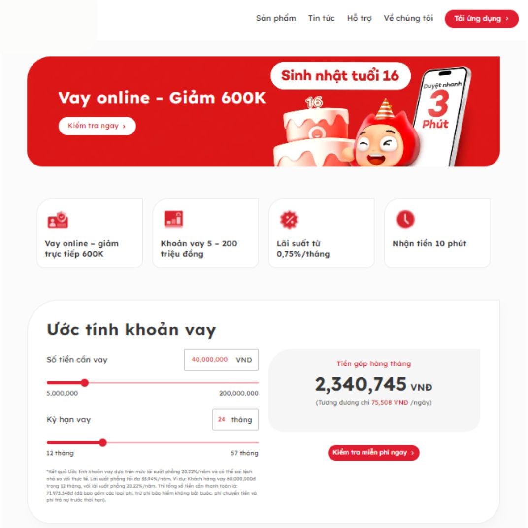 Chẳng hạn, nếu bạn cần vay 20 triệu để sửa sang nhà cửa hay chi phí y tế, Home Credit mang đến lãi suất từ 0,75% mỗi tháng. Việc duyệt hồ sơ nhanh chóng chỉ mất khoảng 3 phút và tiền sẽ được giải ngân ngay lập tức.