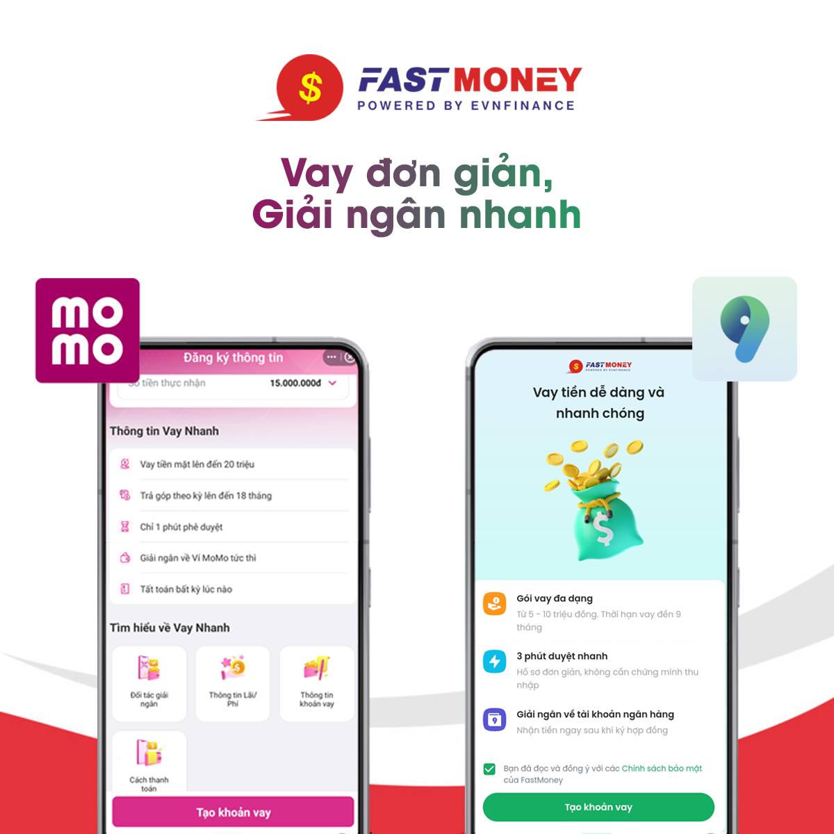 Được phát triển bởi EVN Finance và Amber Fintech, Fast Money tích hợp trên nhiều nền tảng như MoMo và VNPT Money, cam kết mang lại uy tín và an toàn cho người sử dụng.