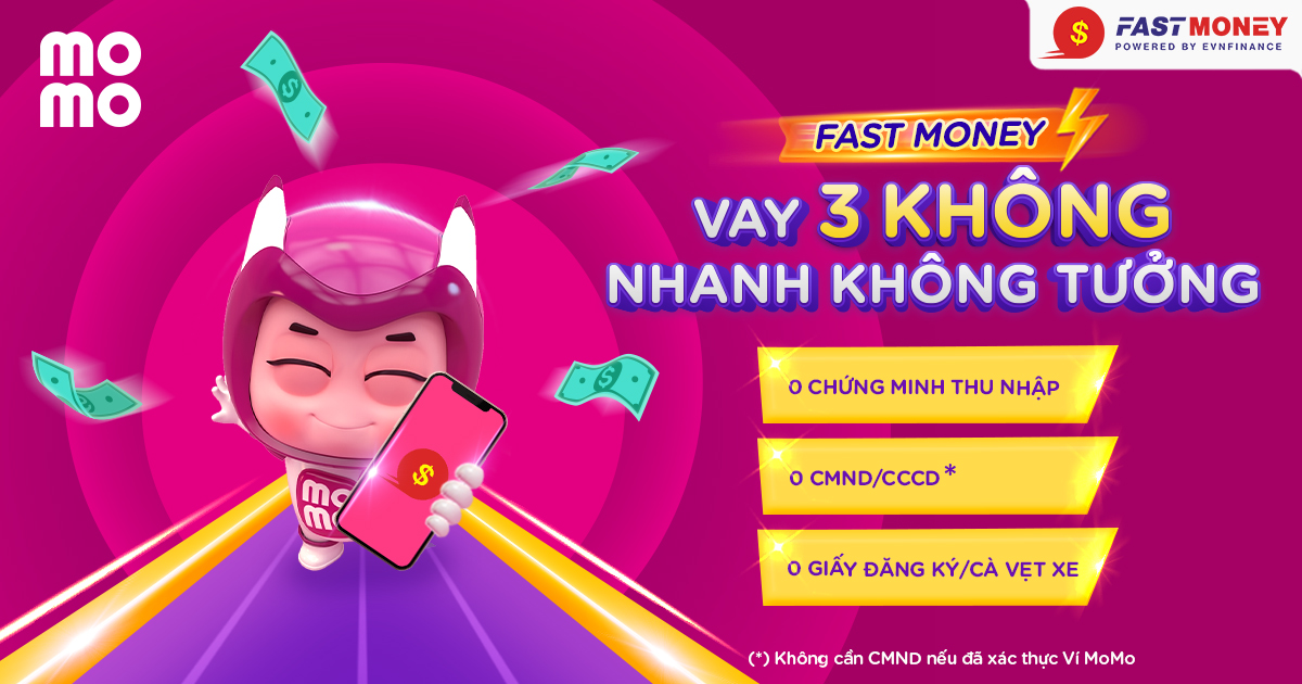 Fast Money là dịch vụ tài chính cho phép vay tiền một cách nhanh chóng và thuận tiện, với quy trình vay không cầu kỳ. Khách hàng có thể vay từ 2 triệu đến 20 triệu đồng thông qua ứng dụng Fast Money, được phát triển bởi Công ty Tài chính Cổ phần Điện lực (EVN Finance) và Amber Fintech, hoạt động trên nền tảng MoMo.