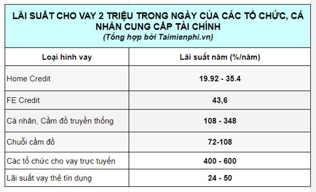 Vay nóng 2 triệu đồng hiện đang trở thành lựa chọn phổ biến cho những ai cần tiền gấp. Với lãi suất vay thường dao động từ 12% đến 36% mỗi năm, tức khoảng 1% đến 3% mỗi tháng, người vay có nhiều lựa chọn linh hoạt tùy thuộc vào từng đơn vị cho vay và hồ sơ cá nhân.