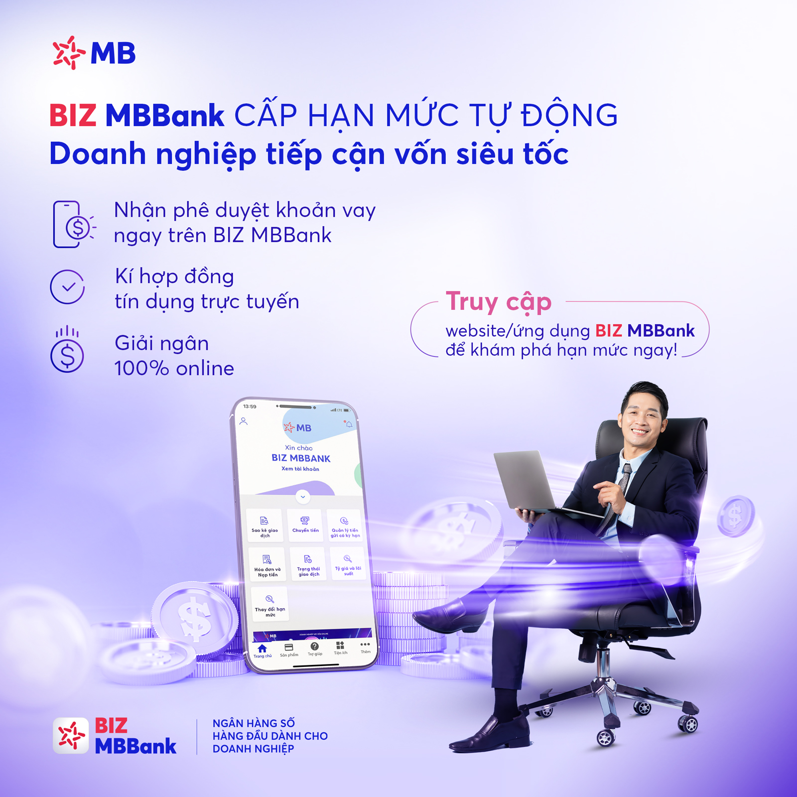 Doanh nghiệp có thêm gói BIZ MBBank cấp vốn tín chấp, không cần tài sản đảm bảo hay hồ sơ giấy, duyệt nhanh và cấp vốn tức thì. Ngoài ra MB cho vay thấu chi theo hạn mức vốn lưu động (có tài sản đảm bảo) cho khách hàng có vòng quay vốn nhanh, cam kết chuyển khoản theo kỳ.