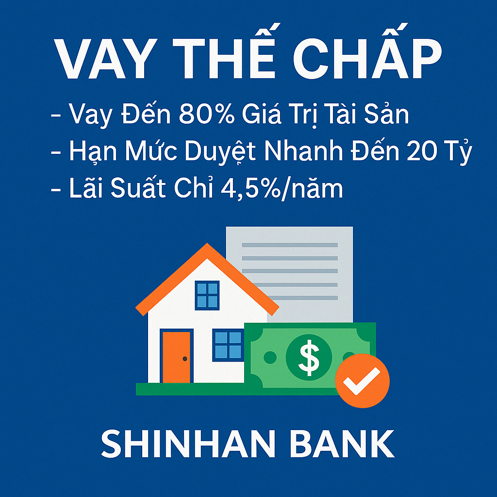 Ngân hàng Shinhan Bank hiện đang thu hút sự chú ý của nhiều khách hàng với các sản phẩm vay thế chấp hấp dẫn và lãi suất cạnh tranh. Việc vay vốn tại ngân hàng này không chỉ đơn thuần là giải pháp tài chính, mà còn mở ra nhiều cơ hội cho các cá nhân và doanh nghiệp trong việc đầu tư, mua sắm tài sản hoặc mở rộng kinh doanh. Trong bài viết này, chúng ta sẽ cùng tìm hiểu chi tiết về các chính sách vay thế chấp tại Shinhan Bank, bao gồm lãi suất, điều kiện, cách tính lãi và những lưu ý khi vay tín chấp.