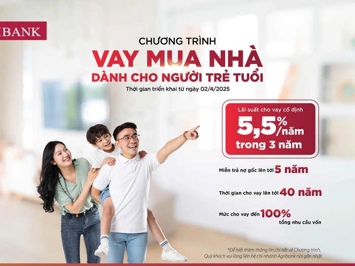 Bạn có thể vay tối đa 100% giá trị ngôi nhà với thời hạn vay lên đến 40 năm. Đặc biệt, Agribank có chính sách miễn trả nợ gốc lên đến 5 năm, giúp bạn nhẹ gánh tài chính trong những năm đầu. Lãi suất cho vay rất cạnh tranh, chỉ từ 5,5%/năm trong 6 tháng đầu đối với các khoản vay có thời hạn tối thiểu 18 tháng.