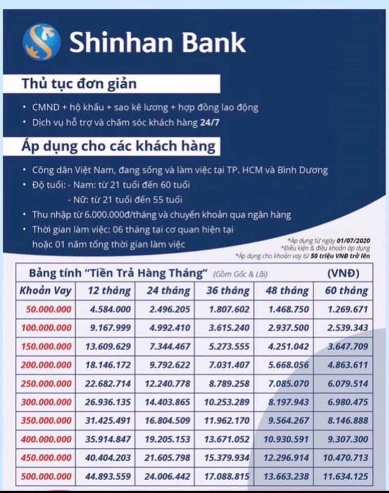 Khi bạn có nhu cầu vay vốn và không biết nên lựa chọn ngân hàng nào, Shinhan Bank là một điểm đến đáng cân nhắc. Ngân hàng này cung cấp mức lãi suất vay trả góp rất cạnh tranh, với lãi suất từ 18% đến 38% năm, tùy thuộc vào từng đối tượng khách hàng. Bạn có thể vay với mức lãi suất từ 5.99%/năm và tối đa lên tới 500 triệu đồng.