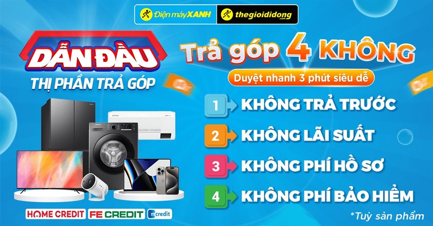Ngoài ra, Thế Giới Di Động còn hỗ trợ trả góp qua thẻ tín dụng của nhiều ngân hàng như ACB, BIDV, Techcombank, VPBank… với thủ tục nhanh gọn, không cần chứng minh thu nhập, rất phù hợp cho những người muốn thanh toán linh hoạt theo khả năng của mình. Thời gian trả góp cũng khá đa dạng, từ 6 đến 12 tháng, giúp bạn dễ dàng lựa chọn kỳ hạn phù hợp.