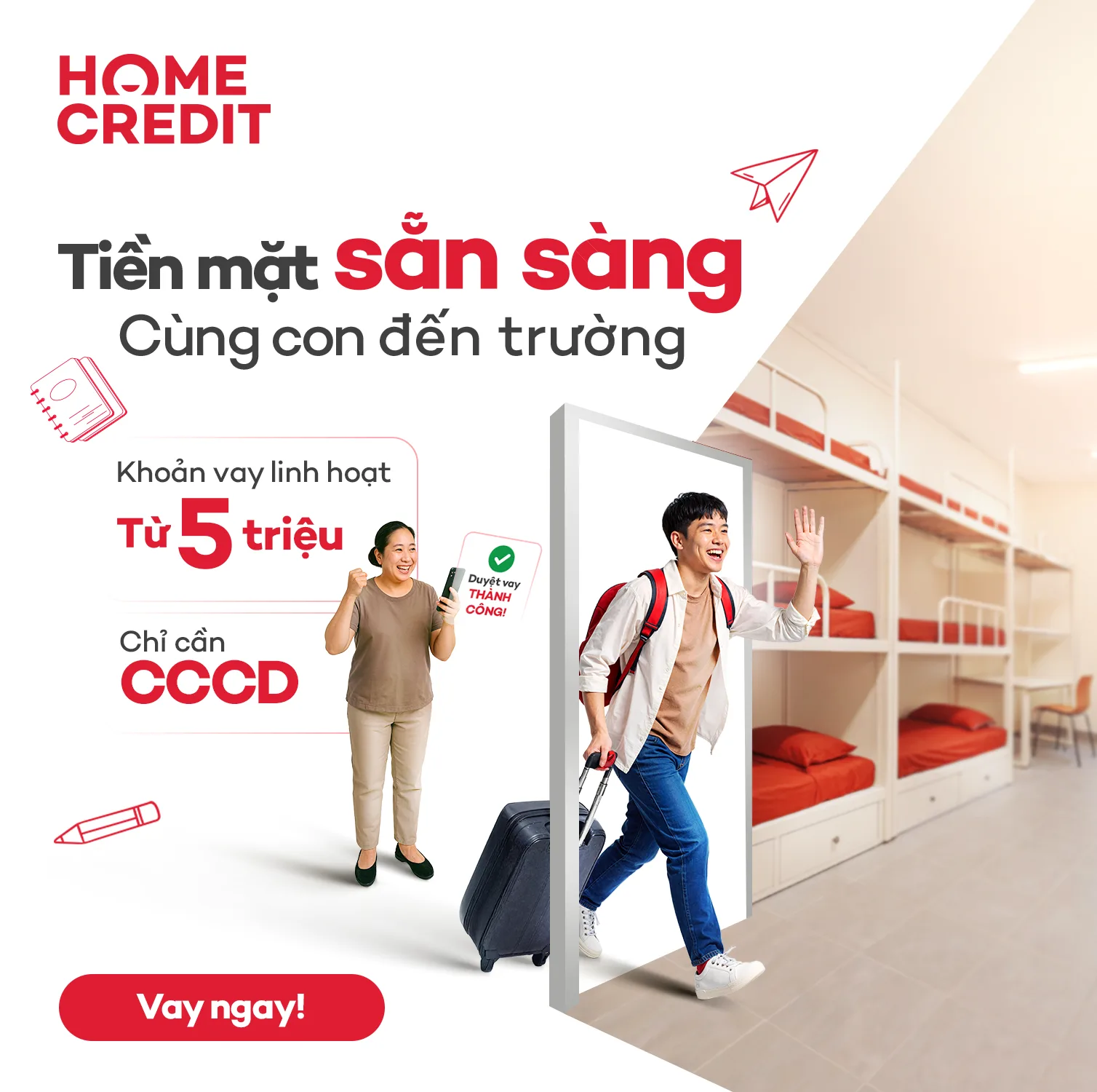 Tất cả những ai là công dân Việt Nam từ 20 đến 60 tuổi đều có thể đăng ký mà không cần gặp khó khăn về giấy tờ. Bạn chỉ cần có CCCD/CMND còn hiệu lực là có thể thực hiện giao dịch, tận hưởng trải nghiệm vay online tiện lợi và nhanh chóng hơn bao giờ hết với Home Credit.