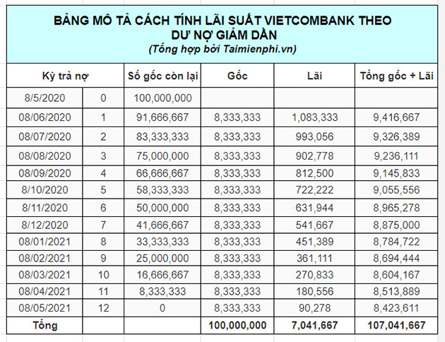 Tính Lãi Suất Vay Ngân Hàng Vietcombank