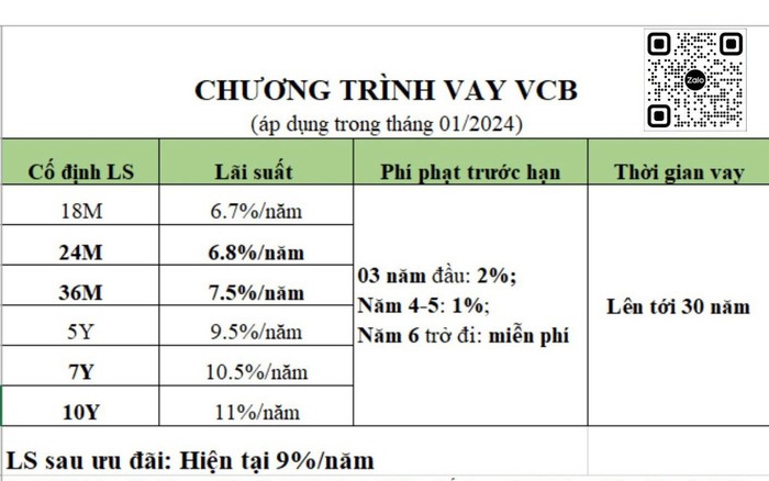 Ngoài ra, với các khoản vay mua nhà, Vietcombank cung cấp lãi suất rất cạnh tranh, chỉ từ 3,99%/năm trong thời gian ưu đãi. Đây thực sự là một cơ hội tốt cho những ai đang có dự định sở hữu mái ấm của riêng mình. Việc vay vốn trở nên dễ dàng hơn với các kỳ hạn linh hoạt từ 24 đến 60 tháng, giúp khách hàng có thể áp dụng vào nhiều mục đích khác nhau như tiêu dùng, xây dựng hoặc sửa chữa nhà cửa.