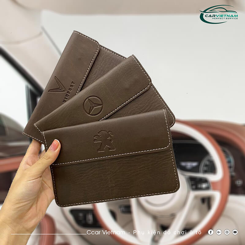 Những chiếc ví này được thiết kế với kích thước tiêu chuẩn, đủ để chứa đựng tất cả các giấy tờ cần thiết như sổ đăng kiểm, giấy đăng ký xe, bảo hiểm… Không chỉ tiện lợi với nhiều ngăn, ví còn có nắp đóng mở nam châm, giúp bảo vệ giấy tờ của bạn một cách an toàn. Các mẫu in logo của các hãng xe nổi tiếng như Toyota, KIA hay Hyundai càng làm tăng thêm giá trị cho sản phẩm.