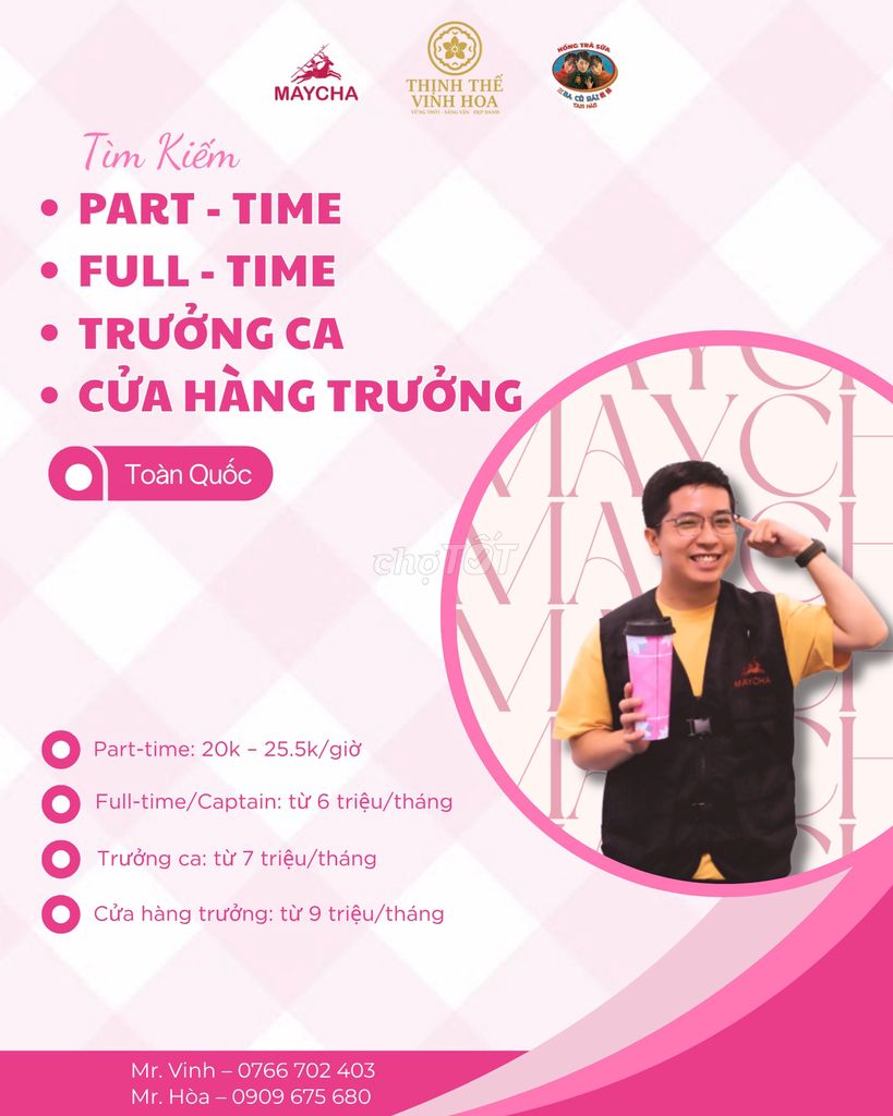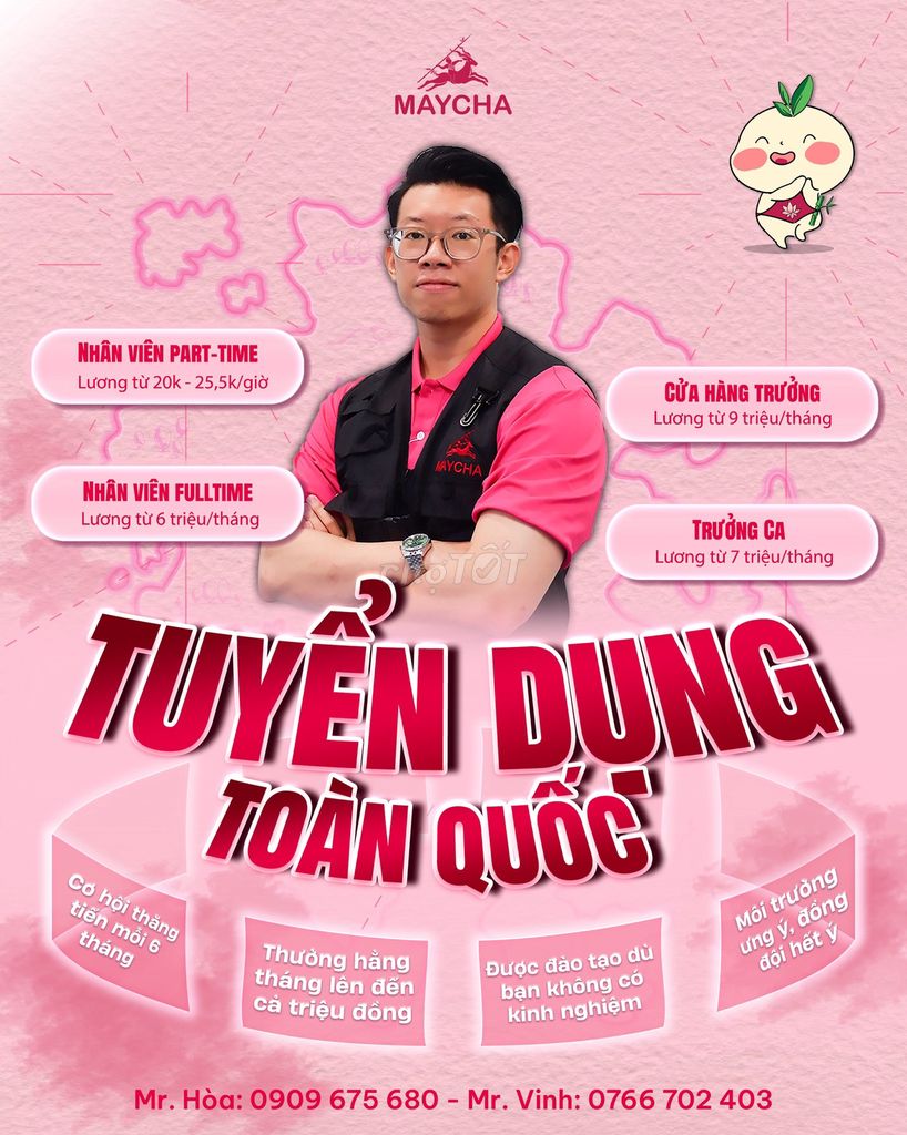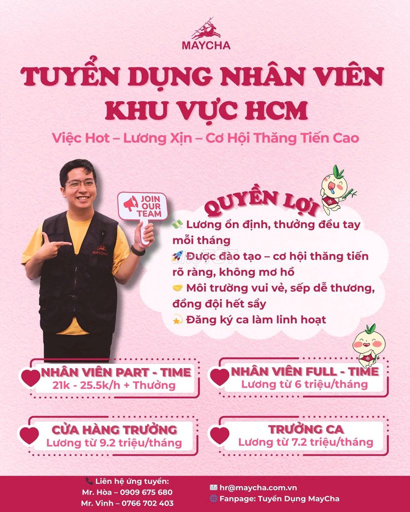 Ngoài ra, chuỗi cà phê Dear cũng tuyển dụng nhân viên pha chế nam từ 18 đến 22 tuổi tại địa chỉ gần sân bóng Ngọc Hà. Công việc này không chỉ giúp bạn có thêm thu nhập mà còn trải nghiệm môi trường làm việc trong ngành dịch vụ năng động và sáng tạo.