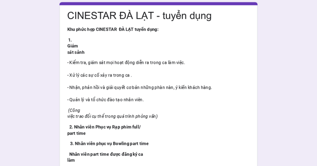 Trong bối cảnh Đà Lạt ngày càng thu hút du khách, việc làm part time tại đây không chỉ mang lại cho sinh viên và người lao động trẻ sự độc lập về tài chính mà còn giúp họ tích lũy kinh nghiệm, phát triển kỹ năng mềm và giao lưu văn hóa. Các công việc này đa dạng từ phục vụ, bán hàng đến hướng dẫn viên du lịch, phù hợp với nhiều đối tượng khác nhau. Đà Lạt, với khí hậu mát mẻ cùng thiên nhiên tươi đẹp, chắc chắn sẽ là nơi lý tưởng để làm việc và trải nghiệm. Hãy biến những cơ hội này thành hành trang cho tương lai của bạn!