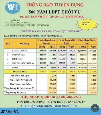 Tuyển dụng việc làm thời vụ lương cao tại Bình Dương