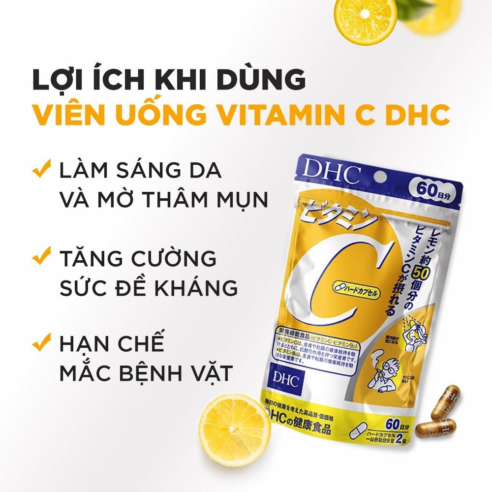 Hơn nữa, DHC Vitamin C còn có tác dụng tăng cường sức đề kháng cho cơ thể. Việc bổ sung đầy đủ vitamin C giúp ngăn ngừa cảm cúm, giảm mệt mỏi và giúp cơ thể luôn ở trạng thái tốt nhất. Đặc biệt, viên uống này hỗ trợ làm sáng da, giảm các vết thâm do mụn để lại, mang lại làn da đều màu và khỏe khoắn.
