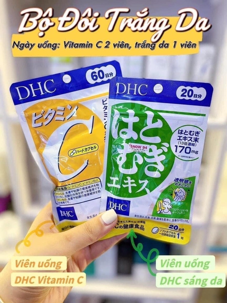 Viên uống trắng da DHC từ Nhật Bản hiện đang trở thành sản phẩm được nhiều chị em săn lùng. Với công thức chiết xuất từ cây ý dĩ, mỗi viên giúp bổ sung 170mg bột ý dĩ, hỗ trợ hiệu quả trong việc làm đẹp và cải thiện sức khỏe. Đặc biệt, DHC còn cung cấp 1000mg Vitamin C mỗi ngày, giúp tăng cường sức đề kháng và giúp làn da trở nên trắng sáng hơn.