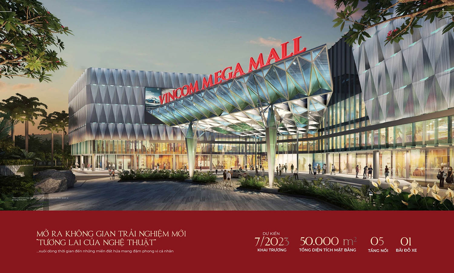 Vincom Mega Mall Grand Park có diện tích lên đến 50.000 m2, thiết kế không gian mở với nhiều khu vực trang trí độc đáo như rừng cây ảo thuật đa sắc màu, hành lang cây xanh và sân khấu nhạc Acoustic ngoài trời. Đây là điểm đến mới hấp dẫn cho cư dân thành phố Thủ Đức và các khu vực lân cận.