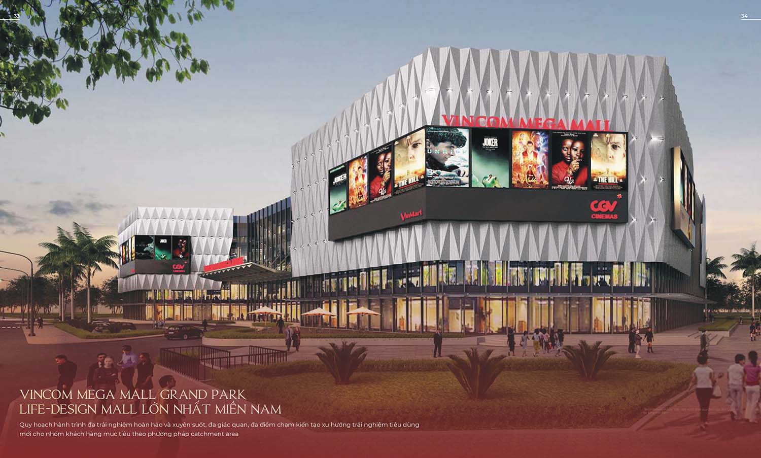 Trung tâm thương mại này được thiết kế hiện đại với 5 tầng nổi và 1 tầng hầm, tổng diện tích sàn khoảng 48.000 m². Là một trong những trung tâm thương mại lớn nhất miền Nam, Vincom Mega Mall Grand Park hội tụ hàng ngàn thương hiệu nổi tiếng như Uniqlo, Zara, H&M, Pandora, Adidas, Nike, và The Face Shop. Nơi đây không chỉ phục vụ nhu cầu mua sắm mà còn đáp ứng các nhu cầu giải trí, ẩm thực, thể thao và dịch vụ tiện ích cao cấp cho cư dân Vinhomes Grand Park và khu vực lân cận.