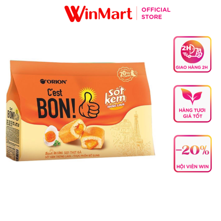 Ngoài ra, VinMart còn đa dạng các sản phẩm tiện lợi khác như bánh bông lan trứng muối C’est Bon, gói 162.4g. Đây là một món ăn nhanh gọn, dễ làm, phù hợp cho những ai không có nhiều thời gian nấu nướng. Không chỉ có vậy, bạn còn có thể thưởng thức các loại bánh cao cấp kết hợp trứng muối như đậu xanh hạt sen hay khoai môn, tạo nên sự phong phú cho bữa ăn.