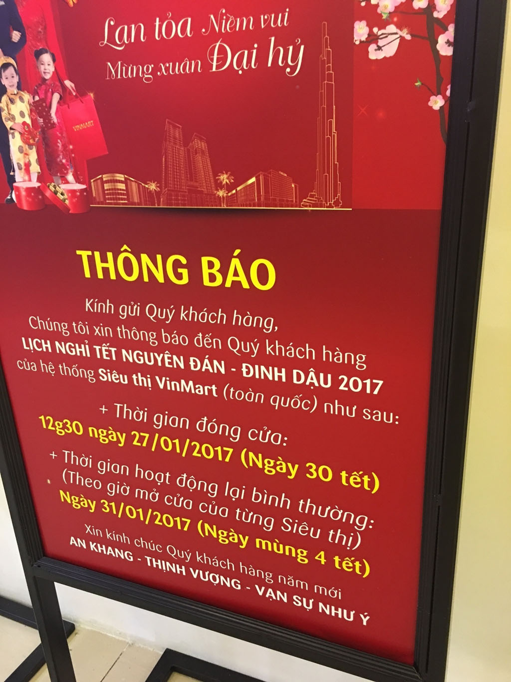 Hãy yên tâm rằng cả quá trình từ Tết ông Công ông Táo cho đến Mùng 4 Tết, hệ thống siêu thị VinMart vẫn sẽ hoạt động bình thường, chỉ tạm nghỉ vài ngày để đảm bảo mọi người đều có một cái Tết trọn vẹn bên người thân.