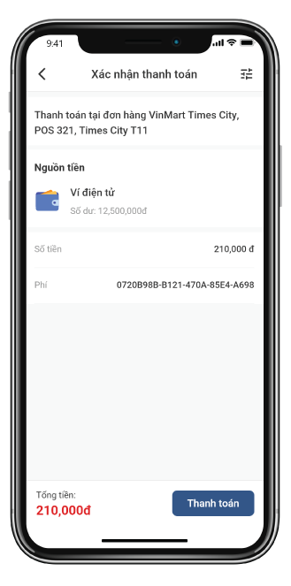 Khi thu ngân đã quét mã, bạn sẽ nhận được thông tin đơn hàng để xác nhận. Sau đó, chỉ cần nhập mã PIN để hoàn tất giao dịch. Quá trình này không chỉ tiện lợi mà còn rất an toàn, giúp bạn thoải mái hơn khi mua sắm tại các siêu thị VinMart và VinMart+.