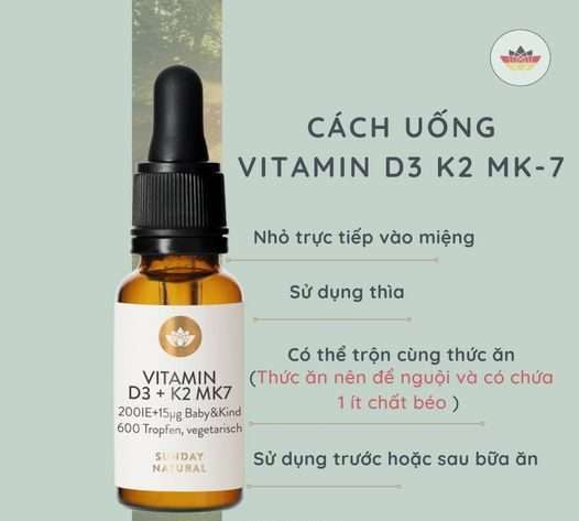 Liều dùng tùy theo cân nặng của bé, ví dụ bé dưới 6kg dùng 1 giọt, từ 7-8kg dùng 2 giọt, và tăng dần theo cân nặng. Vitamin D3 + K2 MK7 không màu, không mùi, không vị nên bé thường không phát hiện ra, giúp việc bổ sung dễ dàng hơn. Để đạt hiệu quả tốt nhất, nên dùng vitamin đều đặn theo hướng dẫn và kết hợp với chế độ ăn uống cân đối.