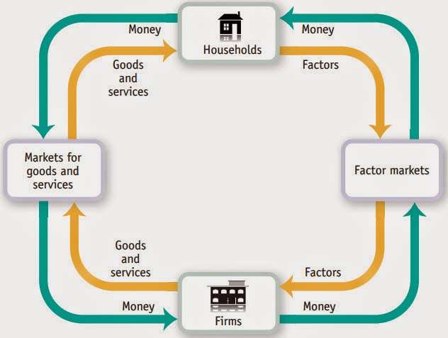 Circular-Flow Diagram, hay còn gọi là sơ đồ dòng chảy tròn, là một công cụ đơn giản nhưng rất hữu ích để mô tả cách mà tiền bạc, hàng hóa và dịch vụ luân chuyển trong một nền kinh tế. Sơ đồ này thể hiện mối quan hệ giữa hai nhóm chủ thể chính: các hộ gia đình và các doanh nghiệp. Các hộ gia đình cung cấp yếu tố sản xuất như lao động cho doanh nghiệp và nhận lại thu nhập dưới dạng tiền lương. Ngược lại, doanh nghiệp sử dụng các yếu tố sản xuất này để tạo ra hàng hóa, dịch vụ rồi bán lại cho các hộ gia đình.