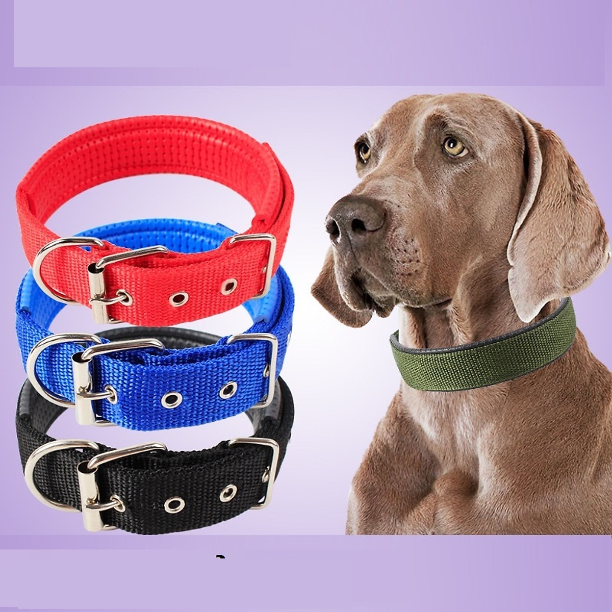 Nếu muốn sản phẩm cao cấp hơn, giá dao động từ 40.000 đến 100.000 đồng trên Shopee, như vòng cổ dù lót đệm mềm 40.000 đồng hay dây đeo bản to 74.999 đồng, bền bỉ và thoải mái cho chó lớn.