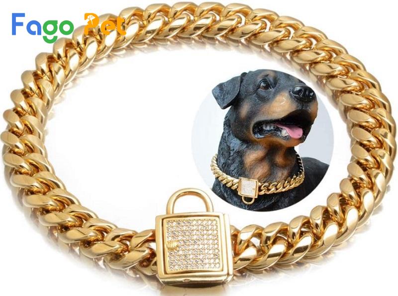 Với chó to lực lưỡng như Becgie, Pitbull, vòng thép không gỉ hoặc inox mạ vàng là “vua độ bền”. Chắc chắn, chịu lực tốt, an toàn cho giống mạnh mẽ.