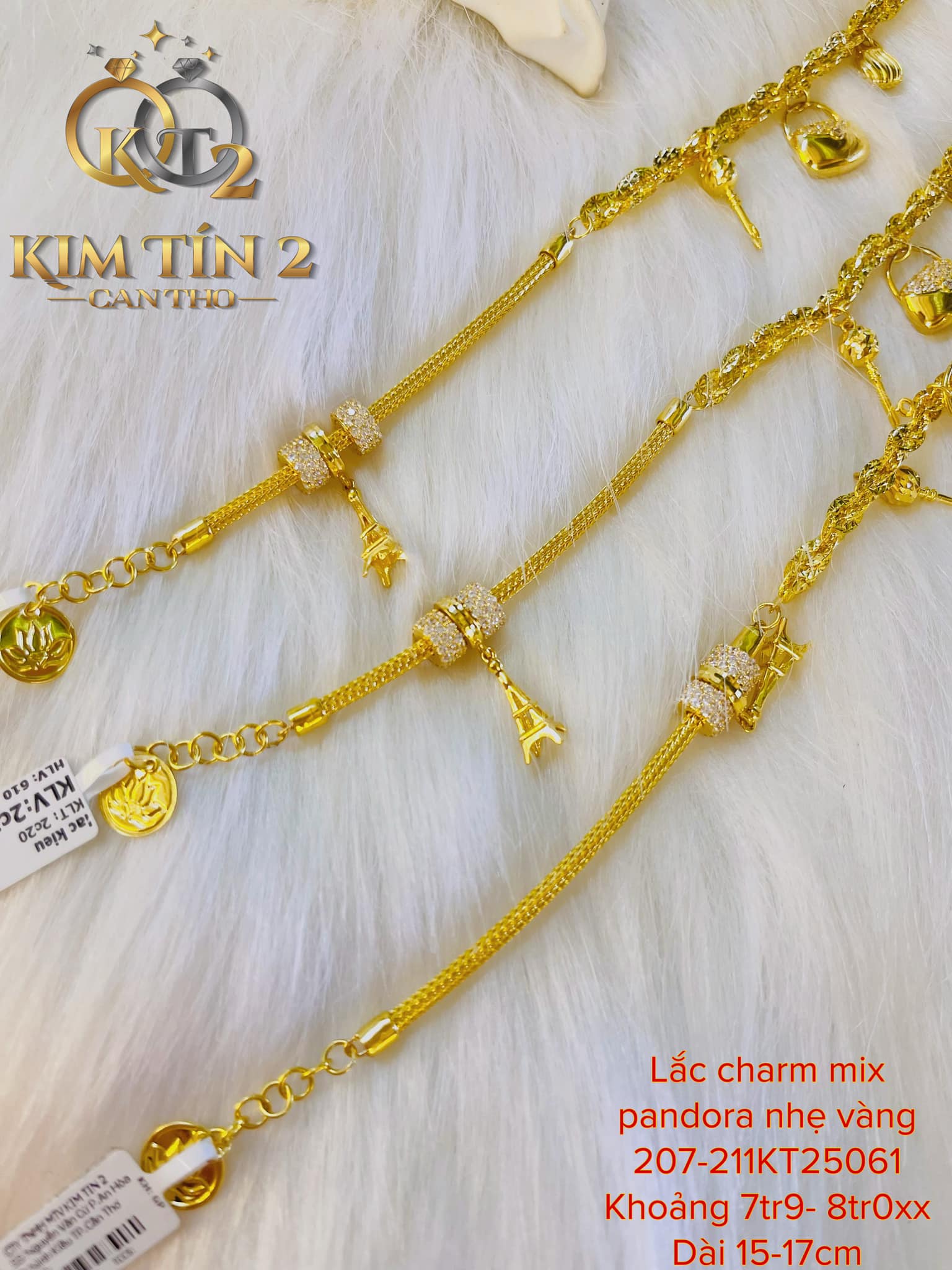 Vòng Pandora Vàng 18K là một trong những món trang sức được nhiều người yêu thích nhờ vẻ đẹp sang trọng và tinh tế. Giá của vòng Pandora vàng 18K thường dao động trong khoảng từ vài triệu đến hơn 5 triệu đồng tùy theo thiết kế và số lượng charm đi kèm. Ví dụ, một số mẫu vòng Pandora charm vàng có giá khoảng 5.290.000 đồng.