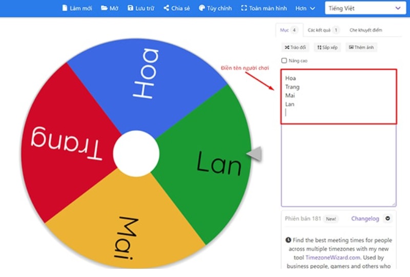 Vòng quay may mắn online dường như đã trở thành một phần không thể thiếu trong các hoạt động giải trí hiện nay. Để tham gia, bước đầu tiên bạn cần làm là truy cập website https://wheelofnames.com/. Tại đây, bạn chỉ cần điền tên của những người tham gia vào khung thông tin theo yêu cầu.