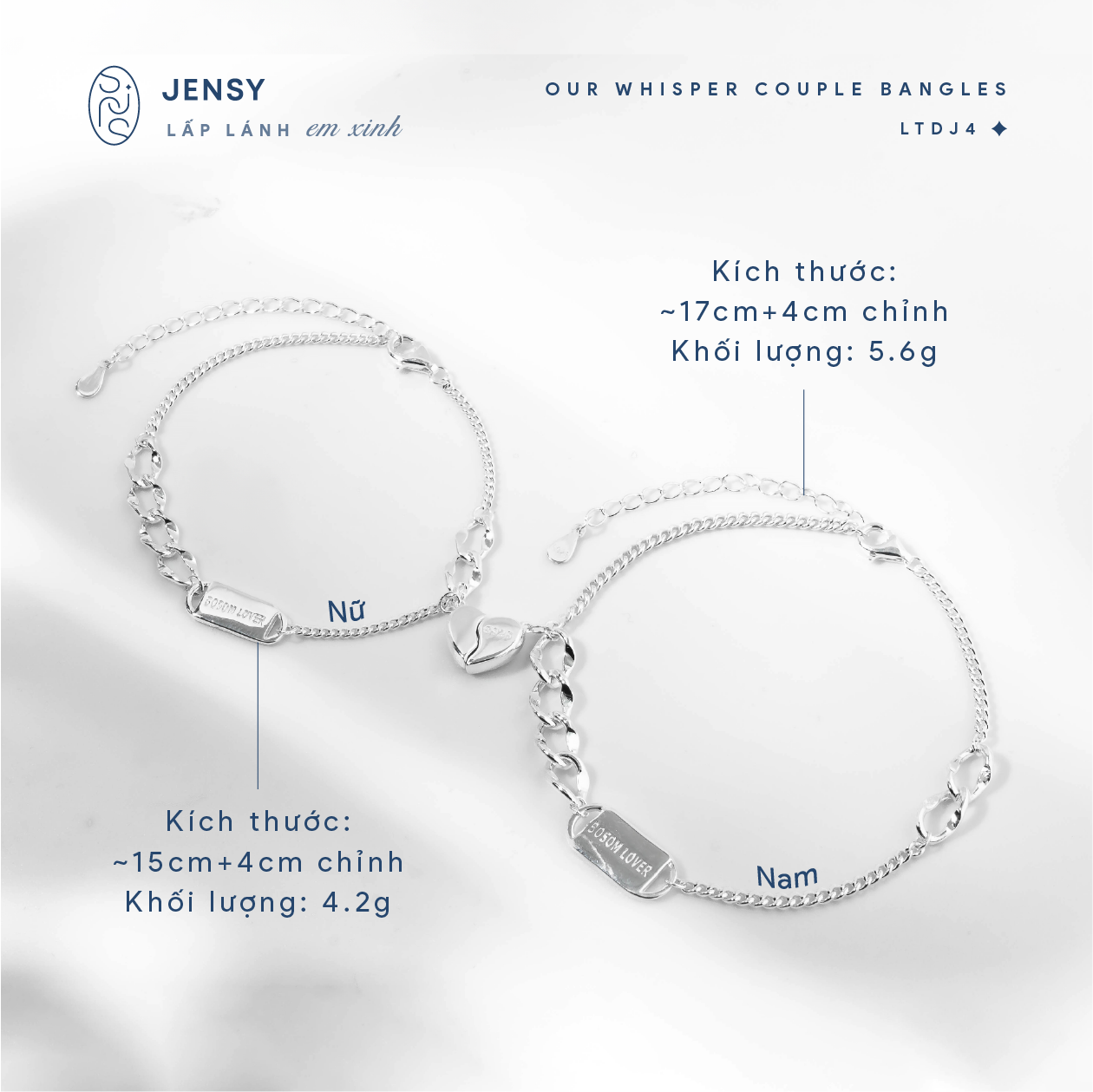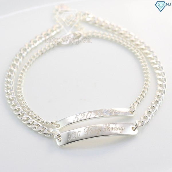 Sản phẩm thường được làm từ bạc cao cấp, mang đến vẻ trắng sáng, bền màu theo thời gian. Thiết kế tinh xảo, hiện đại, phù hợp với cả nam và nữ, giúp người đeo thể hiện cá tính riêng biệt mà vẫn đồng điệu cùng nửa kia. Một số mẫu còn được khắc tên hoặc có hình linh vật như tỳ hưu, tượng trưng cho sự may mắn và tài lộc, rất phù hợp làm quà tặng cho người yêu hoặc bạn thân.