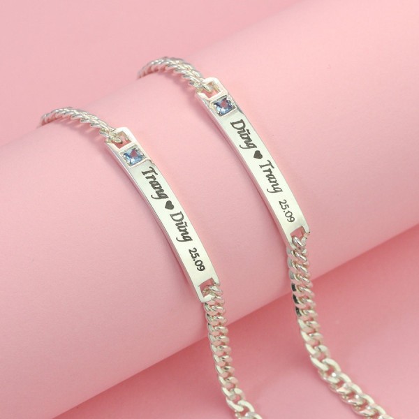 Vòng tay bạc đôi khắc tên là món quà ý nghĩa dành cho các cặp đôi muốn thể hiện tình cảm sâu sắc và sự gắn kết bền lâu. Khi đeo chiếc vòng tay có tên của cả hai, không chỉ là một phụ kiện thời trang mà còn là biểu tượng của tình yêu vĩnh cửu, như một sợi dây vô hình nối kết hai tâm hồn lại với nhau. Điều này giúp mỗi người cảm nhận được sự đồng hành, sẻ chia trong suốt hành trình bên nhau.
