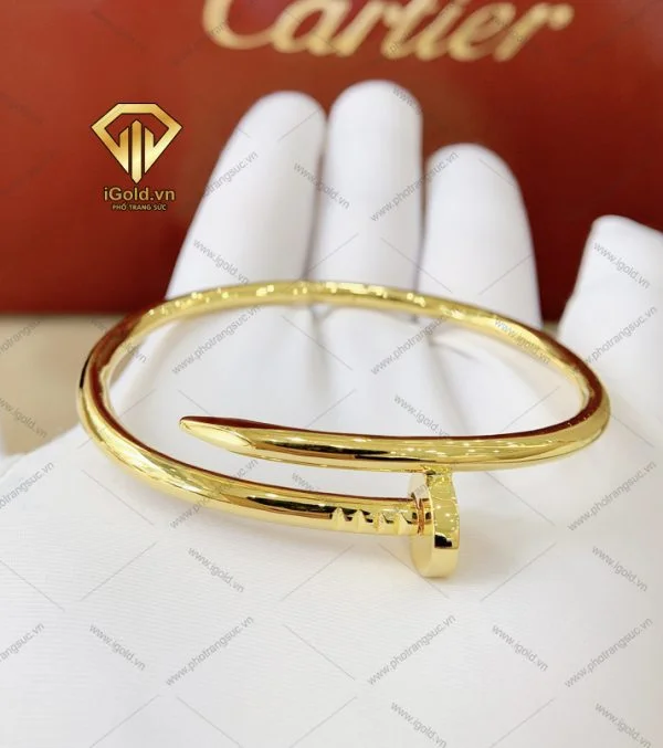 Chất liệu vàng Ý được chọn lọc kỹ càng, đảm bảo độ bền, sáng bóng và giá trị lâu dài. Nhiều mẫu vòng Cartier còn được đính kim cương tự nhiên, tăng thêm phần lấp lánh và đẳng cấp cho người đeo. Thiết kế của vòng tay này không chỉ đẹp mắt mà còn thể hiện sự tỉ mỉ, tinh xảo trong từng chi tiết nhỏ, phản ánh trình độ gia công hoàn hảo của các nghệ nhân kim hoàn tài ba.